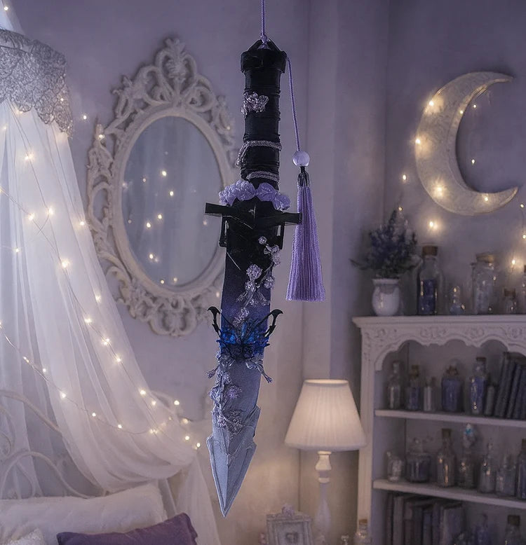 Whether displayed on a wall, shelf, or altar-like setup, the dagger creates a dark, elegant atmosphere — blending mystery, artistry, and refined gothic beauty. The ornamental elements aren’t just details; they’re what give the blade its soul.